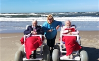 U kunt gratis gebruik maken van onze strandrolstoelen en wij zorgen voor voldoende vrijwilligers die u kunnen helpen waar nodig. Onze vrijwilligers zijn geen getrainde zorgspecialisten.